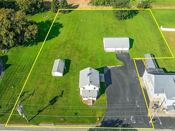 Delightful 2-bedroom, 1-bath home combines the best of cozy living w/spacious outdoor serenity. Featuring natural wood trim throughout & some hardwood floors, this home exudes warmth & character. The eat-in kitchen as well as dedicated dining & living rooms create an inviting space for gatherings, while the full walk-up attic & full walkout basement provide expansion potential & storage space.1st floor pantry could become an additional bathroom or laundry. Step outside to enjoy an open back deck for entertaining & a blacktop driveway with ample parking. Property includes large detached shed & an awesome oversized 2-car+ garage w/metal roof—perfect for a workshop or extra storage space upstairs. Situated on over an acre, this property offers the best of both worlds: peaceful country living w/ easy access to surrounding areas & nearby amenities. Oakfield-Alabama Schools, whole-house generator, & public water; local grocery store & restaurant just a stone’s throw away! Roof 4 years old, Furnace 4 years, & HWT less than 2-3 years; bathroom remodeled 2024.