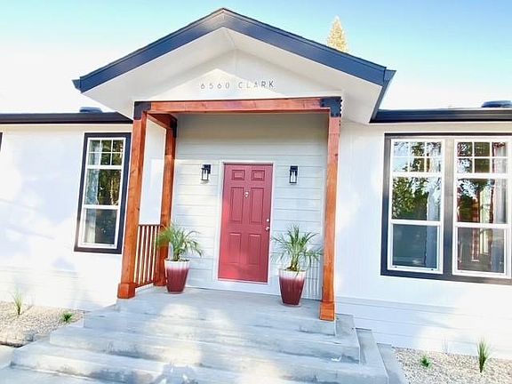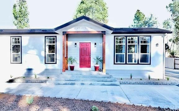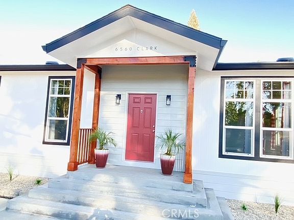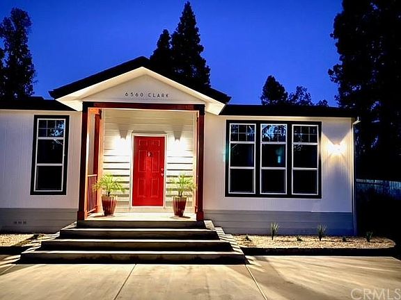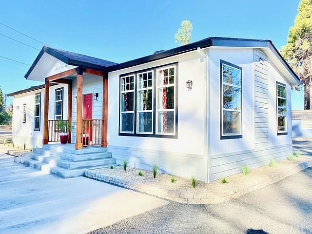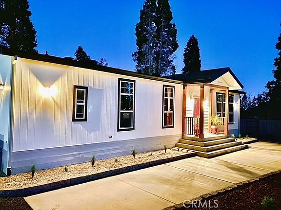 Another quality home installed by Elegant homes! This 2022 manufactured home is ready for a new Paradise resident. This home has a nice open floor plan with upgrades. Every window has the upgraded transom windows above every window brining in tons of light. The builder did crown molding in every room! The home has 9' ceilings throughout. The kitchen has granite counter tops, upgraded pendent lights, LED recessed lights, 5-burner natural gas range/oven, built in microwave, dishwasher and stainless refrigerator! The spacious master bedroom and bath offers ceiling/fan light, recessed lighting, walk in closet, granite counter vanity, upgraded light fixture and nice step in shower with glass sliding doors. The guest bath offers granite counter vanity and a tub shower combination. The exterior is fantastic cement board sided, exterior solar lights, a custom concrete stairs to a covered front porch, concrete parking in front and a new storage shed with window. The yard has some landscape and drip system. The yard is about 3/4 fenced. Located in central Paradise this location offers instant access to the local services. This home is ready for a new owner.