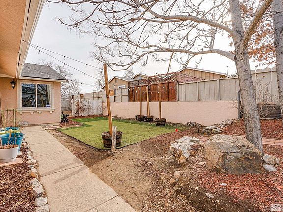 ** Seller is offering $5,000 to help buyers with closing costs, interest rate buy down, or whatever!!** Several updates in recent years! In 2024: brand-new contemporary ceiling fans in the living room and primary bedroom; brand-new shower surround in the primary bathroom; and two ductless mini-split systems to help with your cooling needs in the hot summer. In 2022: new roof, new flooring, and new interior paint., The modern kitchen boasts sleek granite countertops, stainless steel appliances, and soft-close cabinets. The fully fenced private backyard and well-lit front courtyard are perfect for entertaining, gardening, or simply unwinding in the fresh Nevada air. Conveniently located near Sierra Sage Golf Course, North Valleys Regional Park, shopping centers and restaurants. Easy access to I-580/ Hwy 395. No HOA!