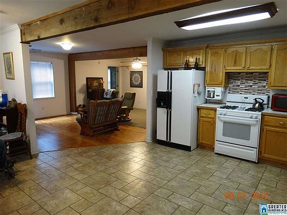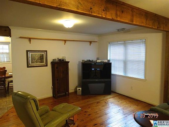 Full brick home w/ 4 bedrooms & 2 full baths. House was completely renovated in year 2000. Brand new roof Oct 2015. Crown molding throughout & beautiful wood beams in kitchen & den. Spacious kitchen w/ all appliances to remain including Refrigerator! Eat-in area w/ plenty of cabinets & counter space. Den features hardwood floors open to eat-in kitchen. Good sized master bedroom w/ walk-in closet. Master bath features double vanity. 3 additional bedrooms w/ walk-in closets. Open deck perfect for entertaining overlooking private back yard. Building to remain w/ tons of space for storage. Large front porch great for sitting & enjoying the country setting. Covered carport w/ circular drive. Clay Chalkville schools! USDA 100% Financing available