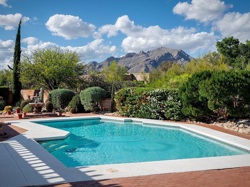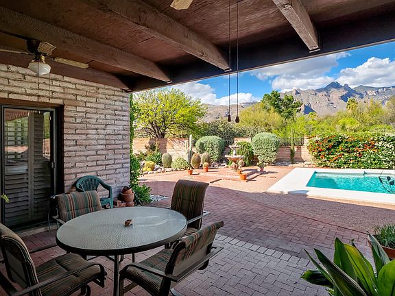 Call 520-400-4802 for appointment. Appts being set 11am or later for 04/25 and 04/26 to Pre approved conventional mortgage or cash buyers with proof of funds. Gaze across the meticulously sculpted back yard, refreshing swimming pool & soak in the fabulous Catalina Mountain views from your private covered patio, Nestled on just under an acre in the Catalina Foothills 9 subdivision - this double brick adobe home has a great mid century vibe. Open living spaces with cozy fireplace b/n the living and family rooms offer ample entertaining space. Don't miss the clerestory windows in the living room& custom metal overhead light fixture in the dining room. The kitchen & breakfast nook have plenty of cabinets, counter space for even the pickiest of chefs. Split bedroom plan w charming vintage bathrooms. Workshop/storage in Garage. Catalina Foothills District 16 Schools. Walking distance to La Encantada. Easy commute to Banner, U of A, Raytheon, Caterpillar & more