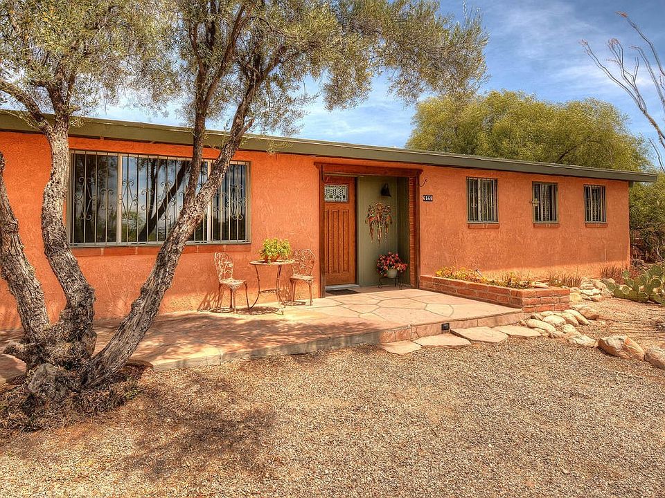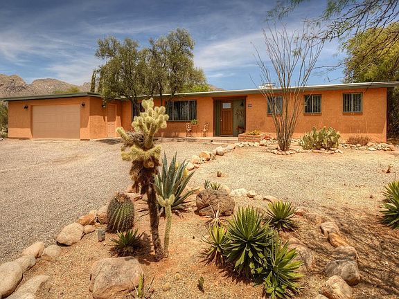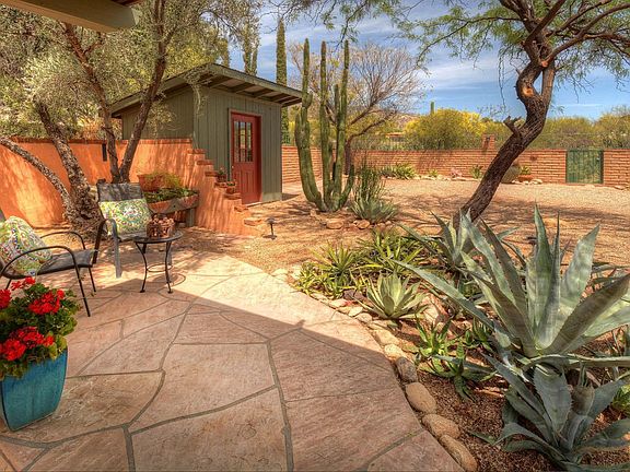 A traditional Tucson adobe home that opens to a wonderful outdoor living space with fabulous mountain views. There is even a cute potting shed complete with a red door! Large covered porch that should be an outdoor living room. I find myself there every time I visit!Open family/kitchen with a huge brick fireplace.Formal living and dining for those more quiet times. 1 bedroom is split and really is the perfect spot for an office! This must of been the home of a woodworker.garage is truly over sized and makes a wonderful workshop with even a venting system!It is easy living as it is but, could be so fun with some special touches! My seller has one too many homes and is motivated