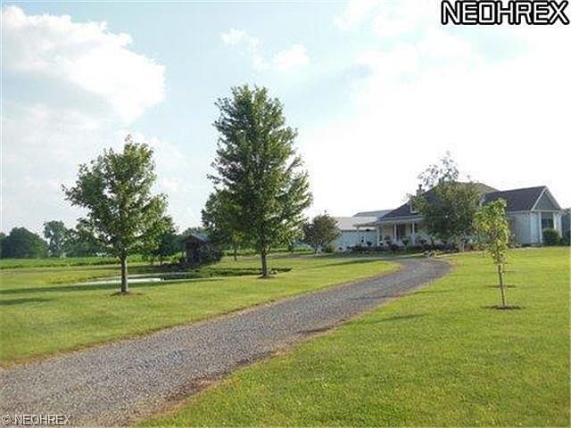Custom built lofty ranch nestled on 5.5 acres. Spacious kitchen with beautiful hickory cabinets and quartz counter tops with a bay window overlooking a springfed stocked pond. Lots of crown moulding, hardwood floors and built-ins. Walkout basement with rec room, 2 bedrooms and a full bath. 24x24 garage with attached 32x48 pole building with 200 amp electric, insulated, with wood burner. Geothermal, 260ft well, 2x6 wall construction with R-19 insulation and much more! Great location, Hartville address with Marlington schools! Additional land available, call for details. A must see!