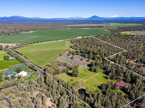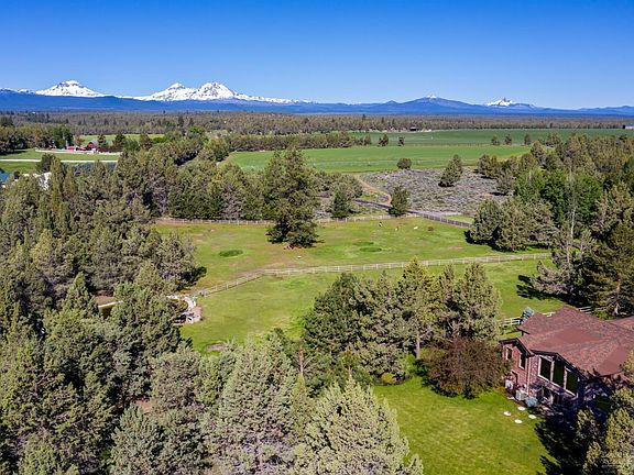 This warm and spacious traditional country home in Tumalo is tucked away in a private grotto opening to the west like a private amphitheater with spectacular views over irrigated pastures to the cascade mountains. There are 48 acres with lawns, gardens, and fields which are meticulously cared for with a large pond including dock and gazebo, as well as a small bunk house and shop/barn. The two level 5,415 sf brick home includes 4 bedrooms, 3 baths, large open kitchen with granite counters and 12' island, living and family rooms, private office, and special, one of a kind wine cellar or he/she cave. Pool table included; llamas and alpacas, optional.