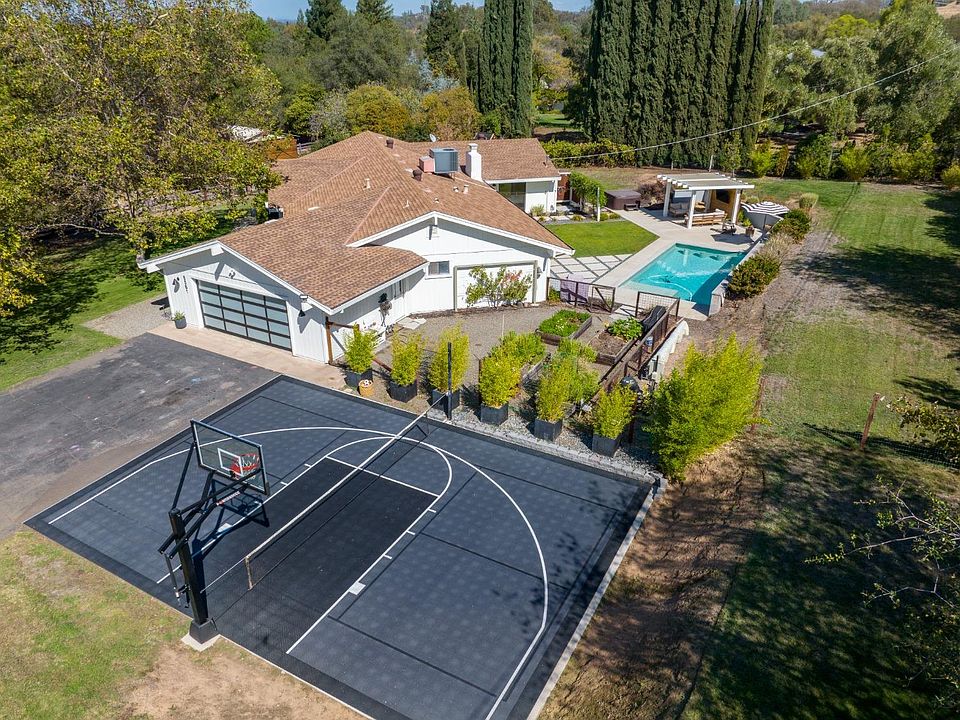 Just wow! Private and rare single story Mid Century Modern Farmhouse on 1.4 acres. Upon entering, you'll see floor to ceiling windows peering out to the front yard. Gorgeous open floor plan with 4bed &3 new renovated bathrooms, Brand new white oak wood LVP floors, and fresh interior & exterior paint throughout. Incredible culinary kitchen w/ concrete counters, bamboo cabinetry, sub zero fridge + 2 sub zero wine fridges, Wolf Range, wolf double oven and miele dishwasher + coffee bar. Enjoy a custom built booth in the dinning room area for family dinners, then cozy up to the gas fire place with a new built in cabinets. The property features a gorgeous custom salt water sports pool w/ built in bar stools & hot tub, covered pergola and TV, outdoor shower, sports court featuring a basket ball hoop, pickle ball & volleyball set up. Not to forget the pastures w/ vinyl fencing & Castle brook barn w/ 2 stalls, tack room, wash rack, including water & electricity. Prime location near Folsom Lake + top rated schools. The perfect blend of country/ suburban living. This truly is a one of a kind home!!