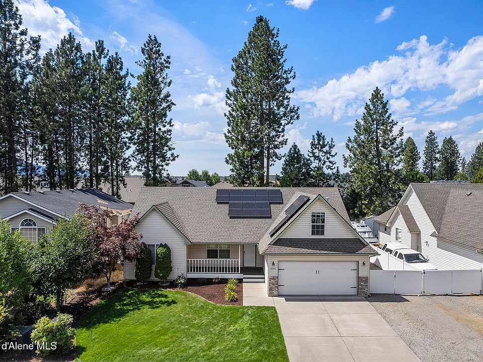 Well maintained 3 bedroom, 2 bath home with bonus room in the sought after Lake Forest subdivision. Featuring vaulted ceilings, central A/C, stylish laminate flooring, and an open layout perfect for everyday living and entertaining. Recent upgrades include a new HVAC system (2021), new water heater (2024), and the home is stubbed for a hot tub. Solar panels virtually eliminate the electricity bill, adding long-term savings and energy efficiency. Outside, enjoy RV parking, a fully fenced and landscaped yard with sprinkler system, and a covered patio ideal for gatherings. Located just minutes from schools, parks, trails, and Lake Coeur d'Alene, this is North Idaho living at its best!