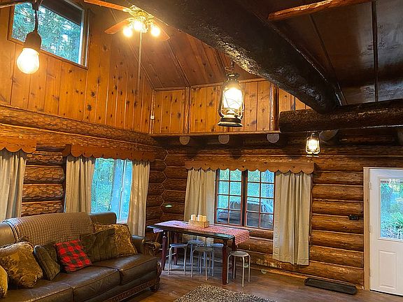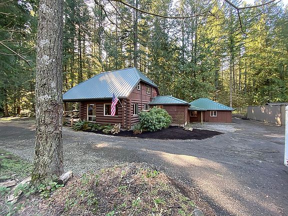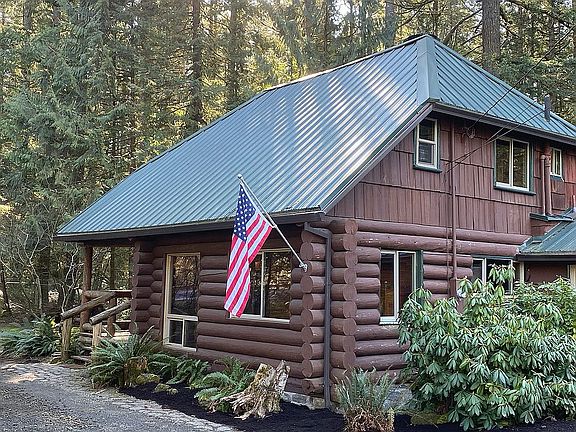 GORGEOUS updated Steiner 1940's vintage log cabin features flexible space for possible second income suite. Conveniently located close to Ski bowl and Mt.Hood! 1632 sq foot main home is a completely renovated Steiner hand built log cabin with 3 bedrooms, 2 full baths, large vaulted great room, back deck, nice yard. Use attached/enclosed 1000 sq foot bonus room as additional living space (currently set up two 2 additional bedrooms, dry kitchen and hang out space) or add a kitchenette and bath to cover your mortgage payment. 2BD/1BA rentals go for $1100-$1500/mo! Backs to BLM land and Wildwood Recreation Area. 15 walk out the back door to the Salmon River!!! 1/2 acre oversized lot accommodates storage, parking including RV, Boat, etc... Complete remodel includes: - New Kitchen with SS appliances, live edge Maple and Alder countertops, farmhouse sink and tile flooring - New laundry room / mud room with tile floors, W&D - New light fixtures throughout - Stone fireplace with wood burning stove insert in great room features new hearth - All new double pane almond colored vinyl windows - All new Gutters - New metal roofing - Pine tongue & groove wall planking throughout - Mohawk Spiced Oak weather resistant laminate flooring throughout (original Doug Firs under neath) - Fully remodeled bathrooms and bedrooms 2nd floor master currently used as a bunk room with 3 beds 2nd floor bedroom large enough for a queen bed 1st floor bedroom features full size bed with trundle underneath Attached Bonus room: - Wood burning stove and cadet wall heathers - Large open hang out space - Two rooms with closets and full egress windows/doors set up as bedrooms Fully furnished Currently rented on Air BNB with approx 60% occupancy Brand new fence being installed this week. Thank you for your interest