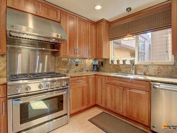 Perched over Delong Lake w/panoramic views out of the 472SF sunroom, this multi-level townhome is updated from top to bottom w/no expense spared! Once featured in Alaska's Best Kitchens, you MUST see to believe! All bedrooms are up, the oversized basement is the perfect flex space & the storage is great. Lakeway Terrace maintains two docks for private lake access & the grounds are immaculate, too!
