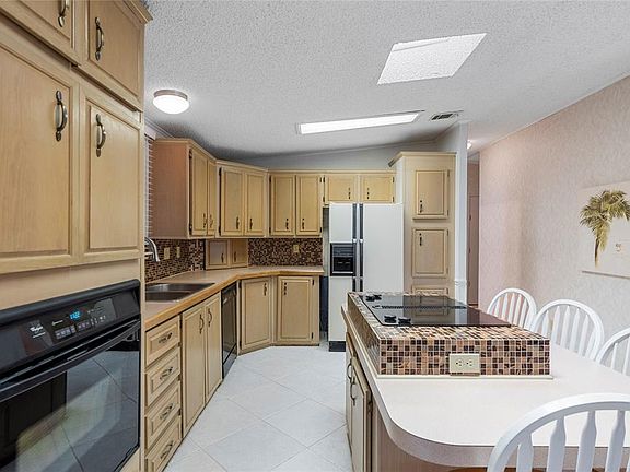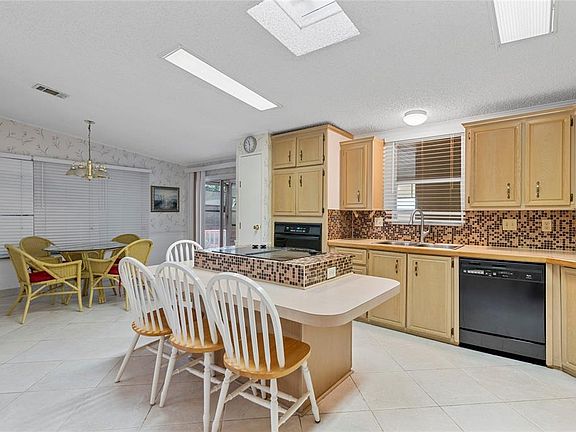 Welcome to the gated, 55 plus community of Tallowwood Isles. This spacious 1600+ sq ft. 2 bedroom, 2 bathroom home has amazing water views. The land belongs to the owner, no land rental fees. Low monthly association fee of $194 that includes the landscaping. This home features tile and laminate flooring throughout, split bedroom floor plan, large primary bedroom and bathroom, eat in kitchen with plenty of cabinets. Enclosed florida room with views of the water. Long driveway with a carport. Separate laundry room with full size washer and dryer. Enjoy the peaceful lake from your deck outback. This community is gated with a clubhouse and pool. Kayaking or paddle boarding is allowed.