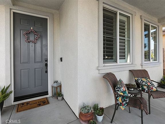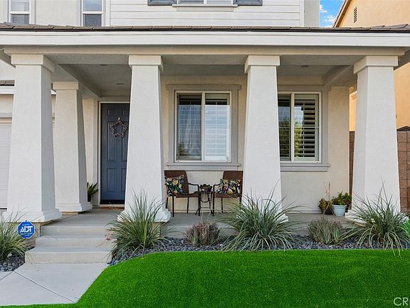 Well loved and well maintained home built in 2015. Walk in to see the newer luxury plank vinyl flooring, great for kids and/or pets. Downstairs you’ll enjoy 9 foot ceilings. Upon entering you’ll see a big, open room that can be used as an office space, a dining room, or whatever you desire! The entire downstairs has white plantation shutters too! As you continue into the house there’s a half bath and an entry into the garage. Moving further into the house you’ll see a large, bright white, open concept kitchen with an oversized granite island. The kitchen has tons of storage and the upgraded dishwasher is less than a year old. The family room has custom-made floating wood shelving and a gas fireplace, surrounded by white subway tile. Upstairs you will find all 4 bedrooms, including a guest room with it’s own full bath that includes a stand up shower. As you enter the extra large owners bedroom, you’ll notice plenty of natural light through the abundant windows, including plantation shutters. The oversized owners en-suite bathroom includes a standup shower, with bench, a large soaking tub, two separate vanities and two large walk-in closets. An additional two bedrooms are down the hall and also include walk in closets and all white blinds. The two bathrooms are close to the third upstairs full bath which includes a tub/ shower and double sink vanity. The laundry room is upstairs as well and includes a counter, deep washing sink, and plenty of storage. Updated Samsung washer and dryer also included. Backyard has an Alumawood patio cover, a fully landscaped yard, and a brand new (one year old) AC unit that includes a whole house air purification system. Front yard is professionally installed turf with drought tolerant plants and beautiful rocks.