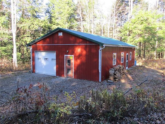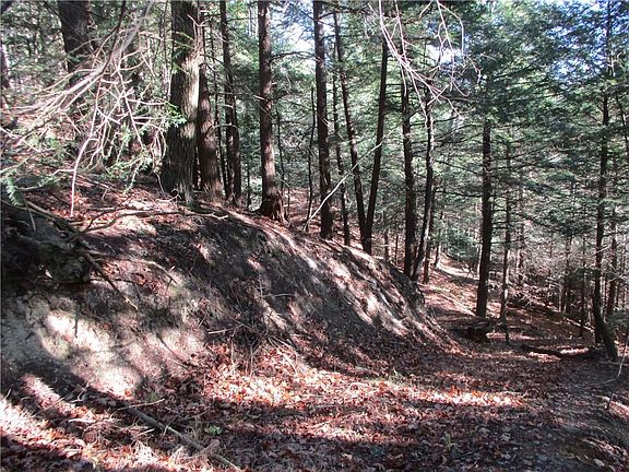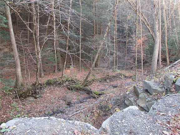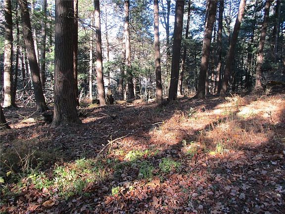 This is "one of a kind"! You'll think your in the Adirondacks. Two steep valleys with a level building area. 28x48 metal barn built 2017 with concrete floor, toilet, 10 windows and two entry doors. Could possibly be finished to live in. Property is mostly mature hemlock and is very unique. Septic tank is in and plans for raised bed are complete. Electric is at road. No well. This is a great opportunity to build your cabin in the woods!