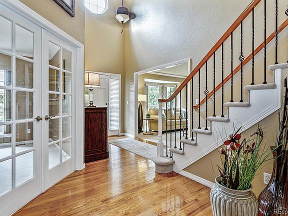 There's nothing quite like the classic quality of a Sanford home in a charming neighborhood. This spacious 2-story offers 5 bedrooms and 5 baths nestled onto a cozy street. Updated throughout and lovingly maintained. The roof is 6 years old; the water heater is new and the home has been recently painted outside (hand-rolled, not sprayed.). The carpet is brand new and there are many custom upgrades like bookshelves and the updated staircase. Short distance to the community clubhouse and pool, as well as parks and trails. All close to Cherry Creek Schools. Three car garage and delightful deck off the breakfast nook. You are invited! Other inclusions are: Air hockey table, T.V. in Family Room, Decorative fireplace in living room.