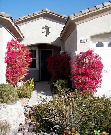 Standard Sale! This beautiful newer home is located in the Hidden Springs Development just south of Mission Lakes Blvd. It is one of the former model homes and has several upgrades. There is over 2000 square feet of open floor plan living space. It features a gourmet kitchen with beautiful cabinets and granite counters and a pantry. There are 3 bedrooms plus a bonus room perfect for an office or entertainment room. It has 2 full baths plus a half bath. The living room has a great built in entertainment and display center plus there is gas fireplace. French doors from the living room open up to the outdoor living space adjacent to the salt water pool and spa. Block wall surrounds the large back and side yard. Great landscaping with palm trees and flowering shrubs and ground cover. For security in addition to an alarm there are cameras located around the home that can be connected to your TV or computer for viewing. Beautiful pool with new tiles and jacuzzi. Remodeled back yard with new artifical grass and firepit area.