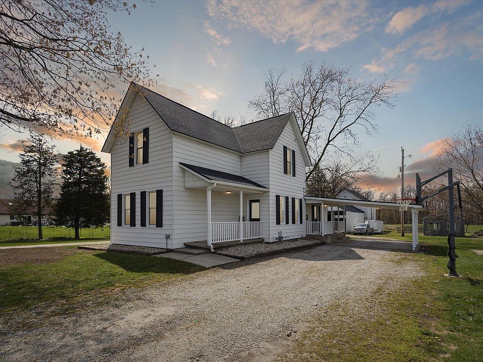 Highest and best offers by noon 4-30. Lakeville two story farm house on 7 acres with outbuildings! This property has been totally remodeled and is like new construction on the inside (this includes dry wall, flooring, carpet and paint etc.). Open concept through the kitchen and living space with 9 foot ceilings! All new kitchen with large island with views of the barn area. Main level laundry and full bath. Upstairs is 3 bedrooms and 1 full bath. Both bathrooms have been remodeled! Many upgrades have been made including new roof, new hot water heater, new furnace, newer central air...! This is a perfect property for your livestock! There are 3 barns on the property. One open end shed is 36x17. The bank barn is 42x30 with an attached barn of 57x28. There is fencing for livestock. This property is close to Potato Creek state park and just a few minutes from the town of Lakeville which has access to the 31 hwy to get quickly to South Bend or the Plymouth area. This property is clean and ready for immediate occupancy!