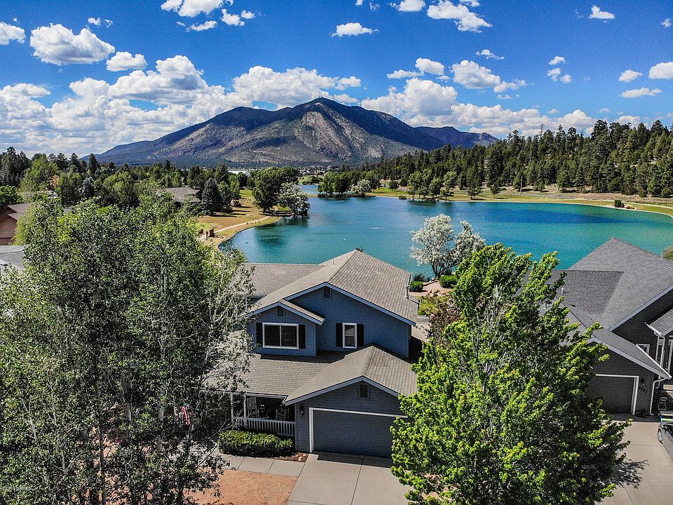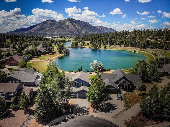 Unbelievable, unobstructed, awesome views of Mt. Elden, forest & water. Walking paths around both ponds. Charming home meticulously maintained by original owner & used as a second home. Spacious patio overlooking view plus a large front porch to enjoy your coffee. Three bedrooms up including large master suite with vaulted ceilings, slider to deck with fabulous views plus 2 walk-in closets & more .First floor den/officer etc. Professionally painted with designer paint. New furnace & A/C (June 2019). Fabulous location near restaurants, Flagstaff Mall, grocery, home depot, movie theatre & more. Convenient access to the interstate. Home can be purchased completely furnished for additional monies. Owner/agents