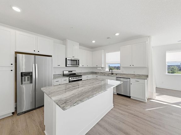 Upstairs, you’ll find three comfortable bedrooms and a conveniently located laundry room. The luxurious primary en suite includes a spa-like bath, walk-in closet, and sliding glass doors leading to a private deck—an ideal retreat. With three bathrooms, a thoughtfully designed Stone Gray designer package, and plenty of natural light, this home combines comfort and sophistication.