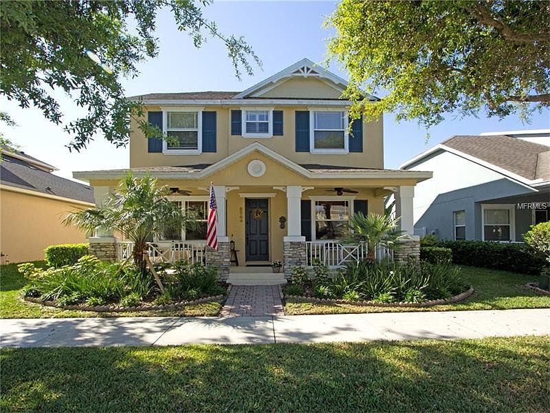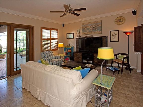 This beautiful Windermere home with its many custom upgrades is sure to delight. It has been meticulously maintained. Tile and wood in all the living areas, crown molding, architectural details, plantation shutters and lots of storage. The living room features a stone fireplace with electric heater, elegant ceiling fan. The beautiful kitchen features a gorgeous tile back splash, under counter lights, solid wood cabinets, granite countertops, a built in breakfast nook, with storage underneath, a breakfast bar and a huge pantry that extends off the kitchen with matching wood cabinets. The family room opens to the beautiful extra-large screened in courtyard. The garage features custom built in cabinets and a roll down screen, perfect for working on projects. The master bath was totally remodeled and features a seamless glass shower and jet soaking tub. Built in desks upstairs and downstairs.