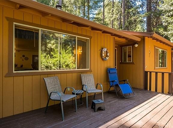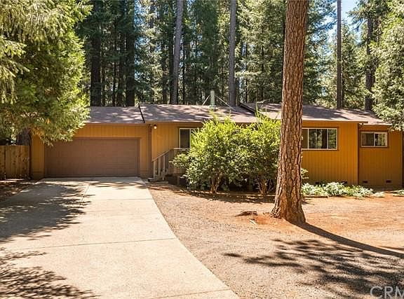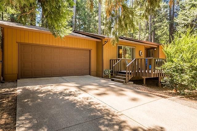 BONUS: Large front yard with 2 shaded RV spaces, circular driveway, built-in WORKSHOP area in garage, and MASSIVE storage room just off garage! This is a 2 bedroom home on record, however there is a LARGE BONUS room with a closet (3rd bedroom). This home boasts a large front porch with plenty of privacy, open floor plan, a floating kitchen island/bar with lots of storage. The kitchen has lots of upgrades too! The living room features a custom mantle wood burning stove with new double-wall stovepipe and chimney. There is a full sized dining area. The master SUITE has a walk-in closet and plenty of space. The exterior has a multicolored rock perimeter, towering Pine trees, and firewood storage.