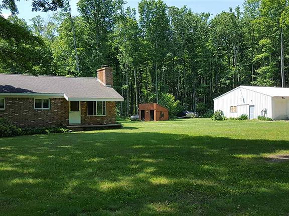 LOCATION, LOCATION, LOCATION! This property is absolutely perfect for any outdoor enthusiast. All brick home offers 3 bedrooms, beautiful all ceramic bathroom with granite counters, hardwood kitchen floor with newer granite counters, living room with wood burning stove. Outdoor wood shed and a wonderful 32' x 40' pole barn/garage with wood stove for all your outdoor toys. The best part of this property is the 200 acres of state land right across the street. Snowmobile and ATV trails right outside your door!