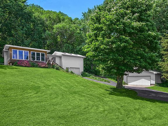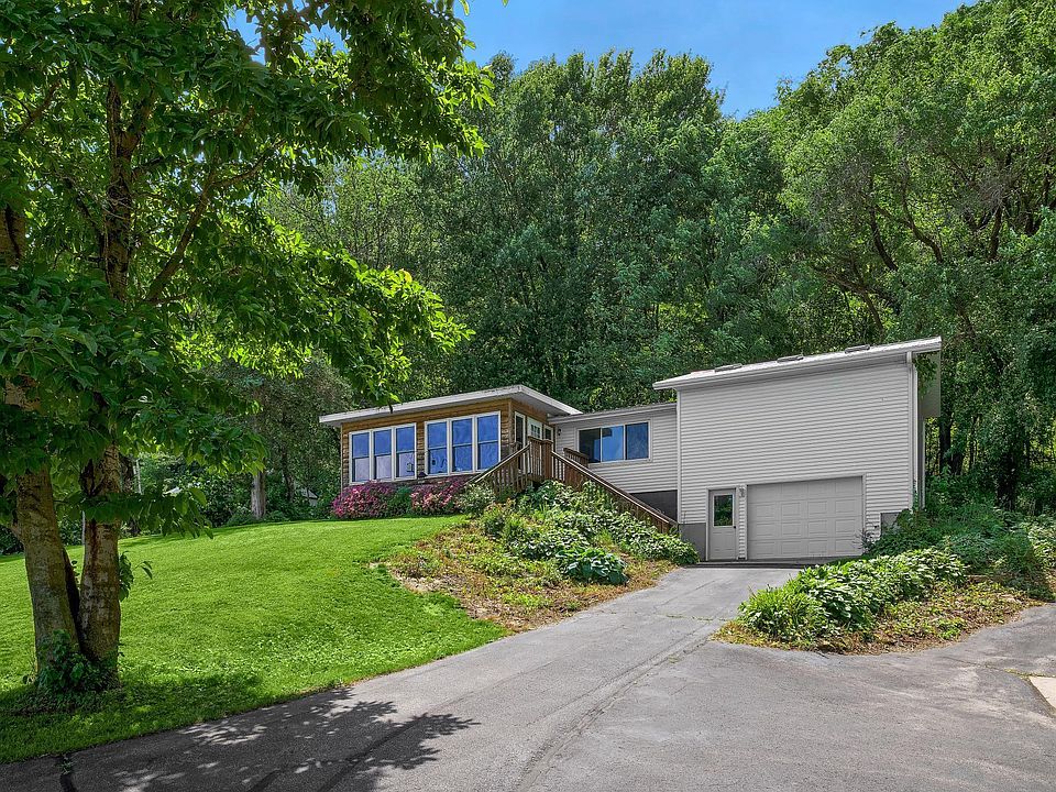 Nestled on the side of a hill in the beautiful Mississippi River Valley you will find this charming 3 bedroom 2 1/2 bath home sitting on 5.8 acres. This home features a newer addition master suite with hardwoodfloors, skylights and master bath that was once used as a yoga studio. This home features vaulted ceilings, a great 4 season room with stunning views of the river valley al year around. This property comes with three separate lots one of the two out-lots can be built on that lot is 2.2 acres. Attached garage is 20 X 21 and the detached garage is 24 x 24. Must see to appriciate the beautiful setting of this unique property.