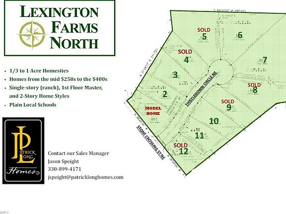 TO BE BUILT New Construction by Patrick Long Homes located in Lexington Farms North 12 Homesite Cul-de-sac. The Chatham II Ranch plan includes a grand vaulted Open Space design inclusive of the Kitchen, Dinette and Great Room. Welcome to this Craftsman-style custom home featuring a gorgeous gourmet kitchen with island bar or command style layout accented with crown and cornice detail cabinetry. 12'8" x 12' oversized Sun Room with Vault and fan/light and extra large windows with transoms and sliding patio door. Split 3 Bedroom design with 3rd bed/Optional Study, Great Room with Craftsman stone fireplace. Finished open staircase with handrailing and balusters to lower level. Main floor Laundry, Family foyer entrance with shoe bench detail or drop zone. Owner's Suite with cathedral ceiling, Owner's Bath with double-bowl vanity with marble countertops, extra large walk-in closet, large soaking tub and separate shower. Full lower level ready to be finished with a 30 yr Tuff-N-Dri basement guarantee. Lexington Farms North is a new development near the popular Washington Square shopping district. Plain Township Local Schools. TO BE Built 6 Homesites still available and a new Patrick Long Homes Model Home starting soon. Photos are of a similar completed home. Client selections and finishes may vary.