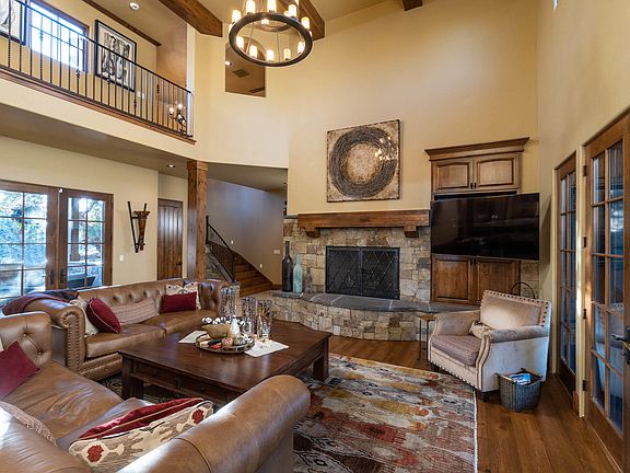 This exquisite luxury home provides the perfect blend of modern and old world elegence. Great room setting, gas fireplace, wide plank wood flooring, open beamed ceiling, georgeous gourmet kitchen with pantry, granite island. Two main level master suites, spiral staircase, rock archways, radiant floor heat. Expansive paver patio, fire pit and built-in BBQ, beautiful landscaped .97 acres backing public lands. This private oasis is perfect for entertaining or family gatherings. Play year round and enjoy all of the amenities of resort living that only Pronghorn can offer!