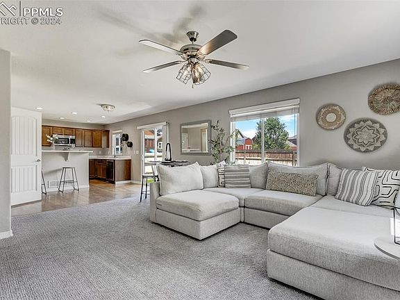 Looking for a home in a great community with modern design and space to entertain, play, and enjoy all that Colorado Springs has to offer? Then your search stops here! This open floor plan includes large windows throughout that allow natural light to fill the interior. High ceilings, newer carpet, and oak floors compliment the modern touches. The kitchen has refinished countertops, large island, a new single-bowl sink, new faucet, stainless steel appliances, and pantry. Upstairs you’ll find the Primary-Suite that has a 5-piece bathroom & walk-in closet. Two more bedrooms and another full bathroom complete the upstairs. The finished basement has a wet-bar in the family room- perfect for movie nights. French doors lead to the 4th bedroom with an on-suite bathroom in the basement. So many thoughtful updates, like the coat closet when you enter from the garage, to new light fixtures throughout. The backyard is fully fenced with ample flat, usable space. This house is truly a gem in the Lorson Ranch community. Walk to parks and schools within the community; while being a very short drive to Peterson, Ft. Carson, and Schriever.