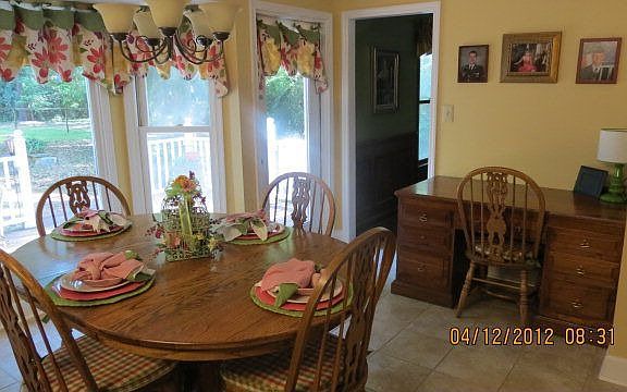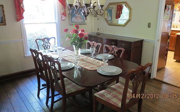 You will fall in love with the curb appeal of this 2 story hidden in the woods down a long driveway. Secluded & private on 5+- acres this home has been updated with solid surface counter-tops, tiled flooring in kitchen, breakfast room, laundry room & half bath. Hardwood floors in foyer, dining room and family room. Beautiful wood accents in the office located on the main level. Two car garage PLUS workshop and/or 3rd garage for boat, riding lawn mower or storage. Also, separate fenced area for pets. Most of property is wooded.