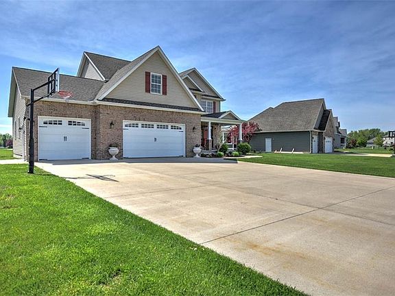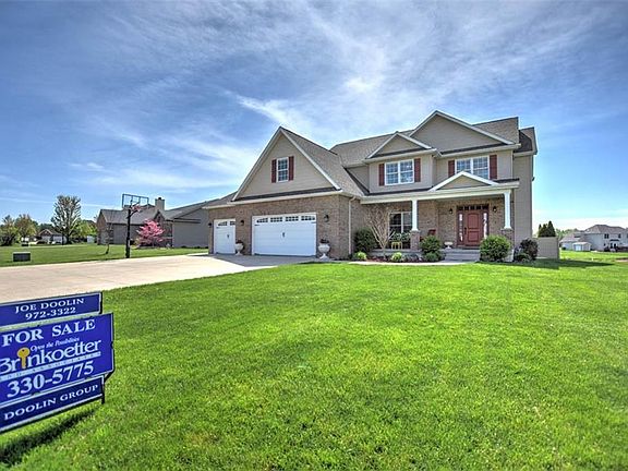 Custom built by the builder for his own family. Wonderful home with many unique features. The entire main floor has solid hickory flooring. Every bedroom has a walk-in closet. Huge kitchen with lots of Schrock Cabinets open to an oversized Great Room with a stone wall. Main floor office can be private by closing the barn doors. The 9' ceilings and the crown molding are added touches for the homes character. The upstairs master suite has a closet measuring 15' x 10. The laundry room is on the same floor as all of the bedrooms. The basement has been finished with the same care as the main floor. The bonus room offers many options that would be a perfect room for guest. The garage has 1128 sq. ft. and has plenty of room for most anything. Year around enjoyment come from sitting on the composite deck looking out at the pond. There is a $40 per year pond fee to keep it looking nice. So, bring your canoe. Low power bills due to the home having Geo-Thermo HVAC.