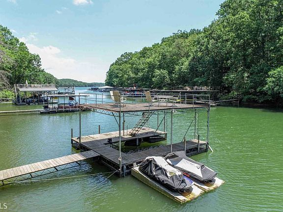 Fabulously affordable lakefront retreat with the most gentle, short path to single slip party dock in great water. Entertain guests from the big back deck overlooking Lake Lanier. Theyâll love roasting marshmallows in the fire pit area or sunning on the dockâs party deck. Inside you'll find the open floor plan to be perfect for relaxing with a cozy fireplace, cooking in the updated kitchen & sleeping late in the master suite on main with lake views. The room they use as a 3rd BR could be a laundry room (has hookups), office or sleeping space (but no closet, wonât appraise as a BR). Other features include a simple gated entry, boat & additional vehicle parking plus a versatile storage room under the deck. Conveniently located to GA400 and nearby Dawsonville amenities. This area of the lake offers numerous campgrounds, parks & boat ramps, perfect for lake friends to visit by water.