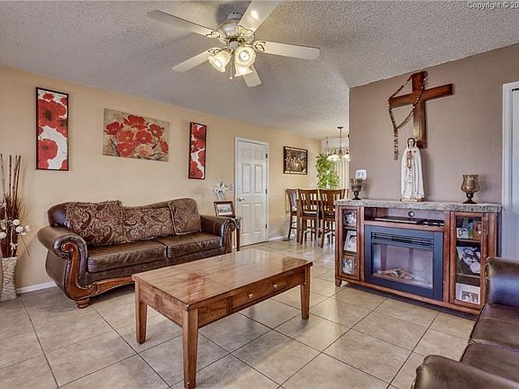 Well maintained ranch home on a nicely sized lot with mountain views. Tile flooring in kitchen and bathroom; new carpets throughout the home. Walk out from the dining area to a 26x12 covered patio for easy BBQ access. Spacious eat in kitchen with all appliances included. Well taken care of and in move in condition. The lot is generously sized, fully fenced, and includes a storage shed. You will find additional driveway space that works great for an RV, small boat, or simply more parking. True one level living.