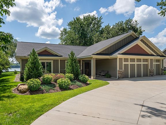 Exquisite lake home with 100 feet of shoreline on the most desirable part of Lake Byllesby. Enjoy lake views from almost every room of this beautiful, one level, 2015 custom built home. The living room & sunroom have vaulted ceilings and gas fireplaces. The impressive kitchen has custom cabinetry, stone backsplash, center island & top quality appliances. You’ll love the owners suite which features a luxurious private bathroom and walk-in closet. The 3 car garage has infloor heat, epoxy floor, floor drains and service door to the backyard. See supplements for the full list of features and upgrades. This is the perfect home where you can have it all! You can work from home, take your lunchbreak on the patio or dock & end the day with a sunset cruise around the lake. It is a quick drive to the Twin Cities or Rochester or the MPLS airport. This home is only available due to relocation. Once you step inside, you’ll see why this is the perfect size house with a priceless view!