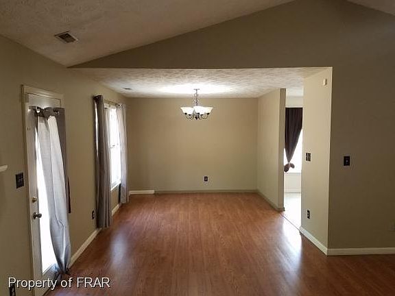 -Lovely home situated in a well established neighborhood with an open floor plan. Beautiful laminate flooring greets you as you enter the front door. Master bedroom has walk in closet. Fenced backyard is large enough to do just about anything. No neighbors behind you just Fort Bragg. New carpet in bedrooms.
