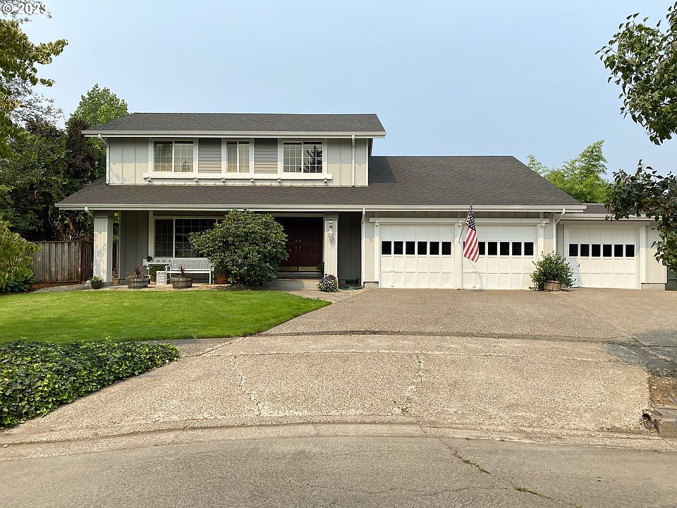 Spacious Thurston lot and home with three-car garage in a cul-de-sac. Country kitchen has a breakfast bar with open concept family room/sun-room and allows plenty of space to entertain family and friends. Elegantly tall entrance ceiling and a large front porch add charm. Sizeable windows allow light and views of the surrounding greenery. Check out the view of the Thurston Hills from the window above the entrance door. Great location near multiple schools, plus not far from Riverbend Hospital, stores, hiking trails, Splash swimming pool, and more! Brand new roof in July 2023! There is plenty of parking in the extra large driveway.