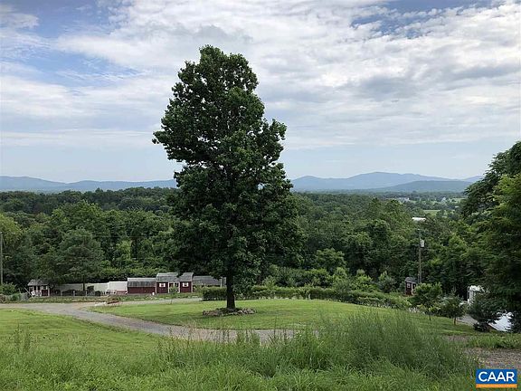 Large 19 Acre building lot with mountain views less than 2 miles to downtown Crozet. Elevated and cleared home site over looks King Family Vineyard with Blue Ridge Mountain views. Driveway is installed and the property has several storage and outbuildings with power that will convey. Small pond on the property that could easily be enlarged and improved. There are several other home sites on the property farther up the hill, as well as an old house site that has fallen into disrepair and is not livable. Property has numerous peach, pear, and pecan trees, as well as improved garden beds.