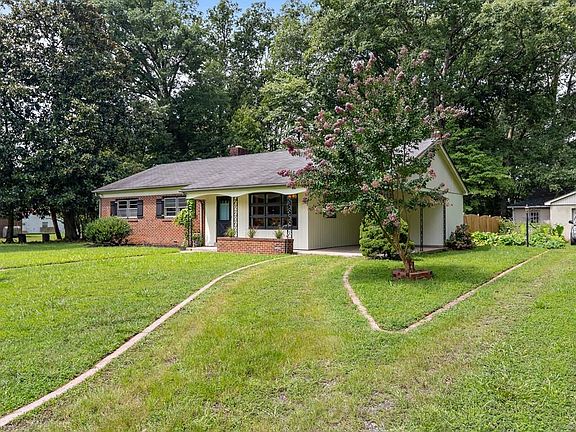 Rancher with 1.5 acres close to shopping and interstates. Three bedrooms, Two bathrooms, Den, Sunroom with with sliding glass doors and skylights. Updated kitchen cabinets and a dining room with a built in cabinet. Covered carport beside side entrance of home. Detached garage with roll up door that leads to a 2 car-2 rollup door additional garage. Garage has Gas heat and power. Lots of mature plants and plenty of room to garden. New outdoor Heat Pump. There is an in ground pool separately fenced that has potential to be used again with some repairs, Sold as is. Garage and out building sold as is.
