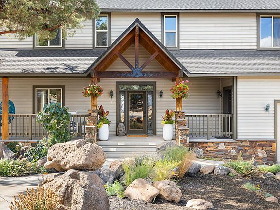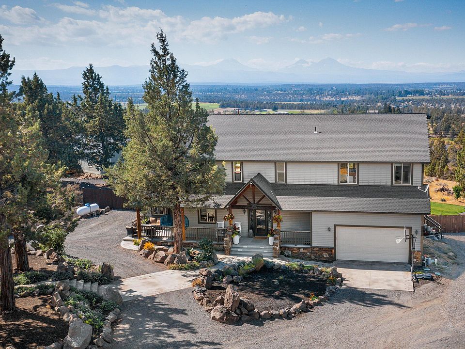 Newly Remodeled. Beautiful Cascade Mountain Views from home on 2.43 acres located Bend and Redmond. Traditional Style home is 3025 sq ft, 3 bedrooms, 4 bathrooms, open floor plan, living room with fireplace, dining area, covered porch and deck access. Large Master suite with fireplace is upstairs with deck. Attached two car garage with workshop space and storage shop area.