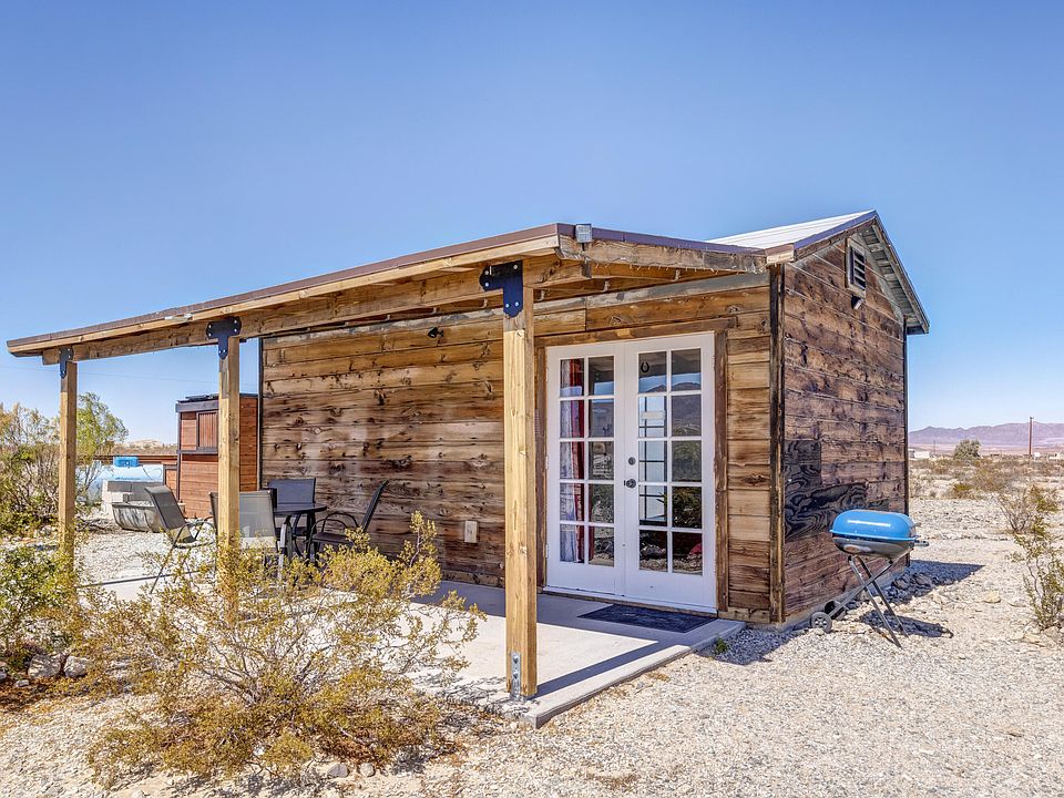 Are you looking for a great escape property to the beautiful and increasing popular High Desert area? Well look no further, here is the adorable Cactus Jack! This historic homesteader cabin was built in 1957 and updated with a number of modern day amenities including a flushing toilet, hot shower, refrigerator and much more. Off-grid solar panels and regularly delivered propane power the lights, accessories and utilities that include a space heater and water heater. Power pole sits at the edge of the property so upgrading to electric would be very possible. Local water truck delivery service supplies a 2,800 gallon water tank (cost to fill approx. $110). French doors open to the back porch where you can sit back and enjoy dramatic desert and mountain views. Window A/C unit is also included in purchase. Just a short drive (4.5 Miles) to the second Entrance to Joshua Tree National Park, shops, bars. and restaurants. One of the neighboring property is the Glass Outhouse Art Gallery which is a absolute treat to visit. Great opportunity to own a pristine piece of property in the booming high desert. The potential for this property is endless with ample room to expand. Access/easement road is well marked and in good shape so access to property is easy and close proximity to Hwy. 62. Great escape from City living and all at a very reasonable price. Great investment opportunity and offered turn key furnished. All CASH purchase; no financing available.
