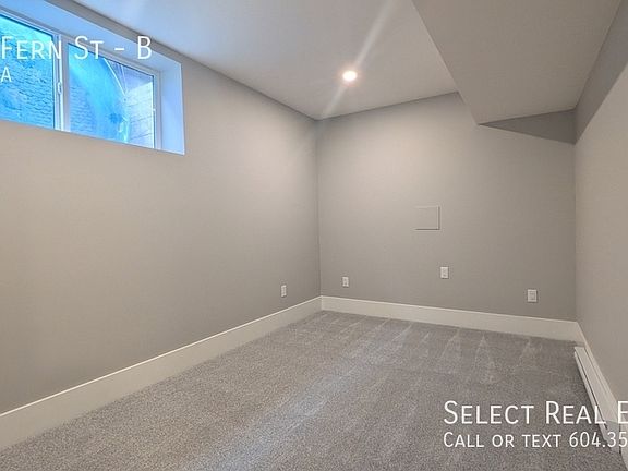 Address: B - 6567 Fern Street Date Available: July 1, 2025 This spacious freshly renovated basement suite has a large open floor plan with 2 very generously sized bedrooms, a large living and kitchen area and ample storage space with large under-stair storage. Lease Details Lease duration: 1 Year Deposit: Months Rent. Pet Deposit: Months Rent. No Smoking Property Details Bed: 2 Bath: 1 SQFT: 900 Pet Details Pets(Yes/No): Upon Approval Type Allowed: Small pet Number: 1 Size Restriction: upon Approval Exterior Details BBQs allowed(yes/no): No Parking type and how many: Off street parking Yard Usage: No Yard fully fenced: N/A Shed Or Shop Usage: No Appliances Included Fridge: Yes Range: Yes Dishwasher: Yes Microwave: Yes Washer/Dryer: Yes Shared Laundry: No Pay Laundry: No Fireplace: No Air conditioner: No Standalone freezer: No Utilities Gas: 25% Tenant Hydro: 25% Tenant Internet/Cable: 100% Tenant Water, Sewer, Garbage: 25% Tenant Utility Type Heat Source: Gas Furnace Septic/Sewer: Sewer Water Source: City Tenant Responsible for Septic pumping: No