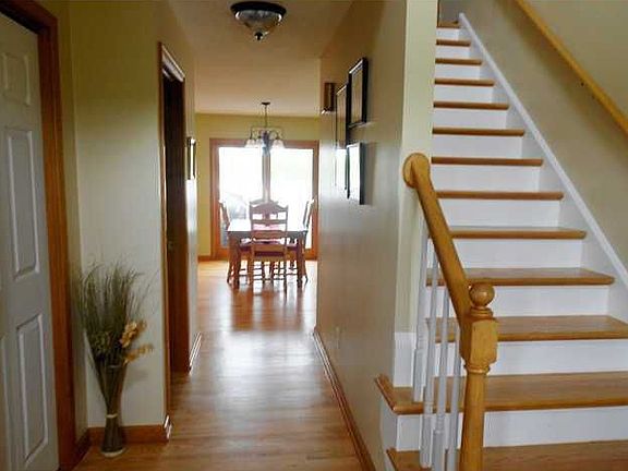 A pastoral 8 acre setting for this rare property. 4 bedrooms, 3.5 baths, includes full in-law suite. New carpet & perfectly refinished hardwood floors (5/13). Great room, woodburning fireplace, 1st floor laundry, central air, central vac, skylite, 8 ft part-finished basement w/workshop. Stamped concrete patio, deck, pool, large multi-purpose pole barn w/electric. Spring-fed pond for fishing, floating, skating. Beautifully landscaped, border of evergreen trees create front privacy.