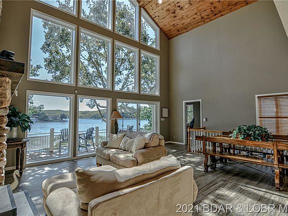 When they say location, location, location this is it. Gorgeous home in prestigious Robyn Point Subdivision in the heart of Osage Beach. Just minutes away from restaurants and shopping. Cove protection with spectacular views from inside the house or out on the decks. This house features five bedrooms and five bathrooms with two of them being Masters. The house also includes what possibly could be a non conforming sixth bedroom that is currently being used as an office. New Roof and all new large stationary glass windows installed in 2021. Beautiful stone fireplace from floor to ceiling. Open kitchen remodeled in 2021. This property includes a large concrete cruiser dock. Subdivision also has Community pool.