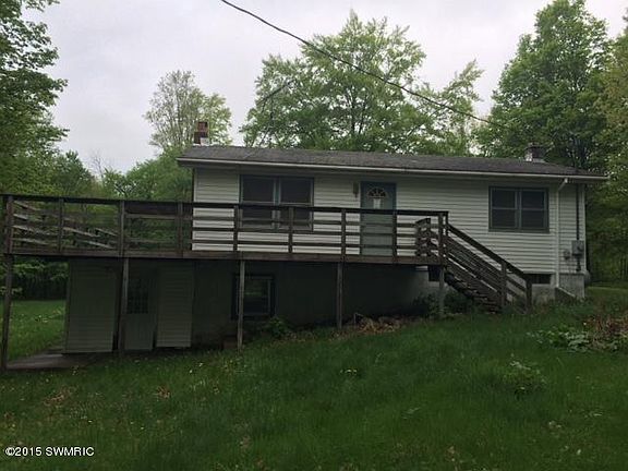 Acreage! 8.66 acres of mixed pasture and woods. The home has a detached garage and large wrap around deck. There are 2 beds and one bath on the main floor and a half bath in the basement. The home will need work including a new furnace. This is a cash only property. Buyers are responsible for all inspections including well/septic. Sold as is.