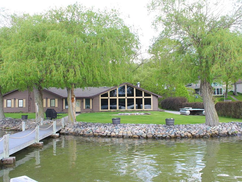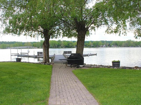 Once a marina, now a single family home that has the look and feel of a lodge. The stone based, 4 sided fireplace is perfect for ending a day on the water with a cozy fire. The 32 x 40 great room will accommodate a crowd for games or watching sports together. As you relax or play indoors there is a great view with new floor to ceiling windows overlooking 150+ ft. of sandy beach, a permanent U shaped pier, a fire pit and, of course, the beautiful lake. The back yard has a scenic winding stairway through woods and nature that adds privacy and a park like setting. At the back of the property, a 22 x 48 pole building great for winter boat storage and parking is close to the road for easy access. At the lake, a 12 x 16 shed for water toys.Bring family, bring friends because there's room for everyone!Shavehead Lake is 289 acres of all sports fun. Just north of the 80/90 tollroad, 30 minutes from Notre Dame and just over 2 hours from Chicago.