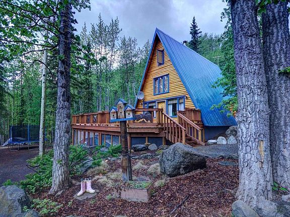 Very unique log chalet on Victory Road. This house has lot of square footage and some cool handiwork. This is an amazing opportunity for right owner. A small creek runs through the property.