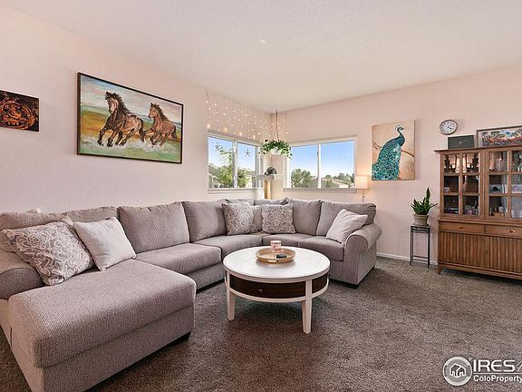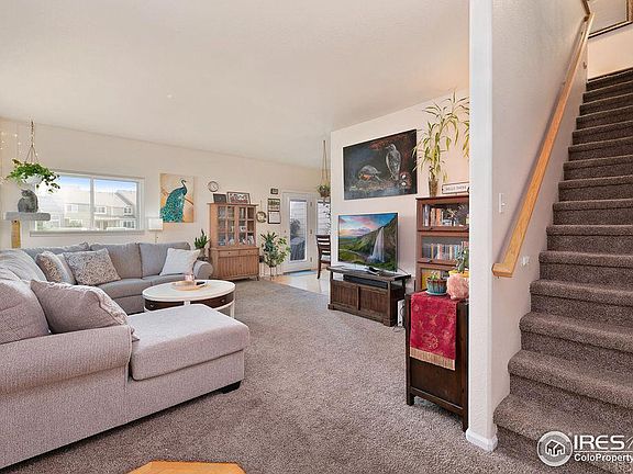 Open house CANCELLED this Saturday Mar 2nd, 11-1pm. Home is under contract. Beautiful TOWNHOME/PATIO/duplex home in Paragon Point that lives like a single-family home! This turnkey home has 3 bedrooms, 3 bathrooms & laundry conveniently located on the second floor. Oversized primary bedroom with attached en-suite and walk-in closet. Triple-pane windows in primary bedroom and main floor. Very Bright open concept living on main floor/kitchen with wood floors and stainless-steel appliances. Separate dining with new sliding glass door with 3-point locking system leading to patio & yard. Spacious attached 2-car garage and large unfinished basement to expand in the future. The basement has carpet installed with rough-in and would just need a little more work to finish it out, could be used as a 4th bedroom. Fresh paint throughout home and plenty of storage. The townhome is an end unit with only one small wall attached to other townhome. Easy living with exterior maintenance (including roof), landscaping and snow removal of driveway and up to front door taken care of by the HOA and located on a peaceful cul de sac. HOA also includes gorgeous trails, pond, tennis courts, pool, nearby playground and park. In Poudre School District and just a mile from South Ridge Golf Course!