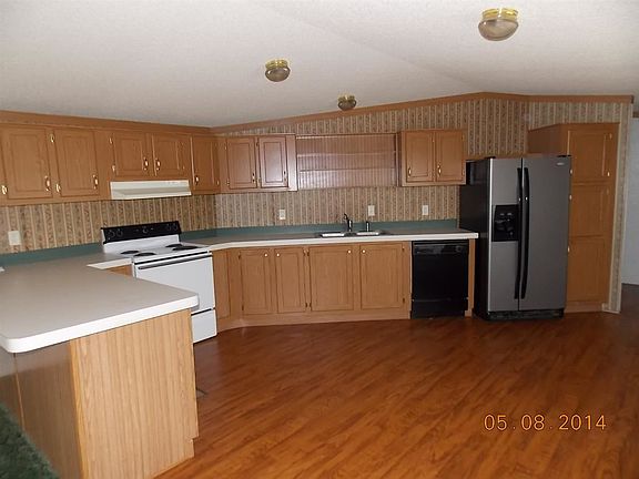 Single wide Manufactured home which is anchored & double blocked sitting on nice large (.739 acre) corner lot on Mackey Ranch Rd. Home is in great condition with large open living and dining area with bar separating rooms. Master bedroom is isolated with large bath with separate shower and large bathtub. Ceiling fans.
