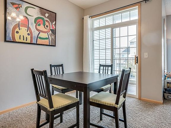 Do not miss this enjoyable immaculate townhome with brand new carpet throughout and fresh interior paint. Inviting open great room floor plan for easy living and entertaining! No cramped feeling here! Large windows for lots of natural light. Nice kitchen with plenty of cabinets, ceramic tile flooring and handy counter seating. There's a multi-use dining area with walkout to the deck. Master BR w/walk-n closet, 2nd BR & full bath up. Convenient location, parks & trails nearby. Poss. quick close