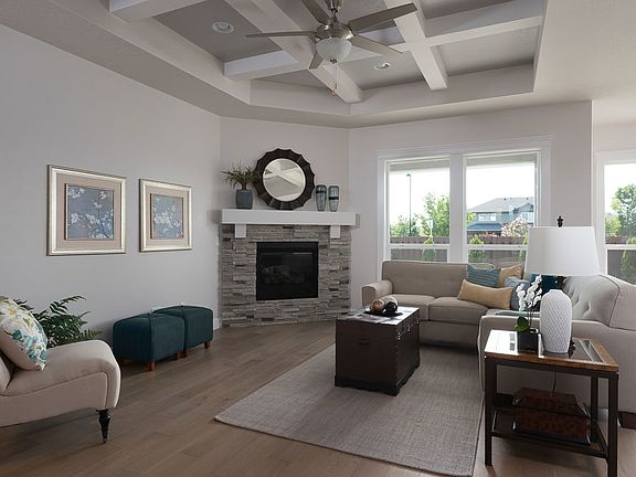 The Riverton Bonus by Tresidio has a grand entry, split bedrooms, open kitchen to great room, utility w/master closet access & 2+ garage. Oversized 2nd bedroom or office/den w/ window seat. Hardwood, beautiful countertops, stone fireplace, coffer & tray ceilings, are just a few features! The trim detail is amazing! Tons of options for the upper bonus room with ½ bath. Master suite is elegant with great storage & finishes including tile flooring, tile wrap shower, dual sinks & enormous closet.*Pictures shown do not always reflect our standard home features.