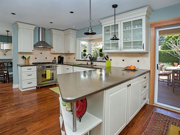 This extraordinary home has been thoroughly and tastefully modernized inside and out. New windows, roof and gutters, new floors, new kitchen and baths, inside laundry and a separate office. Expanded Kitchen features quartz and new cabinets. Master has expanded upgraded bathroom with heated floors. New fireplace and surround. Stunning redo of the yard featuring decks and patio area. Both bedrooms are full of light. Inside laundry area.