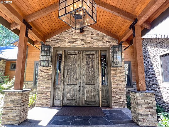Outstanding Estate with no expense spared on the world-famous Main Umpqua River! This one-of-a-kind property includes a gorgeous Estate home, a second home, huge RV/boat garage, two large shops, greenhouse with raised beds & sink, & vineyard! Enter the grand double doors of the Estate home to the expansive great room with vaulted, beamed ceilings, solid hardwood floors, bar area, & massive windows overlooking the stunning river view! The gourmet kitchen has a huge granite island & 2 sinks, hardwood cabinets, wet bar, tile backsplash, pot filler, & stone accents. Enjoy the lovely primary suite with 2 grand bathrooms, the first with walk in tile shower, double sinks, & walk in closet with built ins, & the second with beautiful tile floor, inset jetted tub with double sided fireplace, walk in tile shower, heated towel rack, large vanity, & bidet. Walk further into the large primary bedroom with hardwood floors, projector screen, octagonal river viewing area, French doors out to the deck, & huge walk-in closet with a shoe rack granite island, lots of built ins, mirrors, sink, & washer/dryer area. The second bedroom on the main level is also a suite with hardwood floors, French doors out to the deck, walk in closet, ceiling fan, tile floors & walk in shower. The Disney themed theater room with wet bar is perfect for entertaining! There is a secret hidden door that leads to a large upstairs executive suite with living area, tile shower, jetted tub & granite countertops, bedroom with walk in closet, & private balcony! 4-bedroom, 3-bathroom, 3192 S/F second home perfect for multi-generational living, ADU, etc.! Features include vaulted & beamed ceilings, hardwood floors, kitchen with granite countertops, tile, brick accents, stainless steel sink, & skylight, living room with stone fireplace & slider to the upper deck, primary suite on main floor with walk in shower & jetted tub, downstairs living room with beamed ceilings, fireplace, tons of storage & huge vault, & slider
